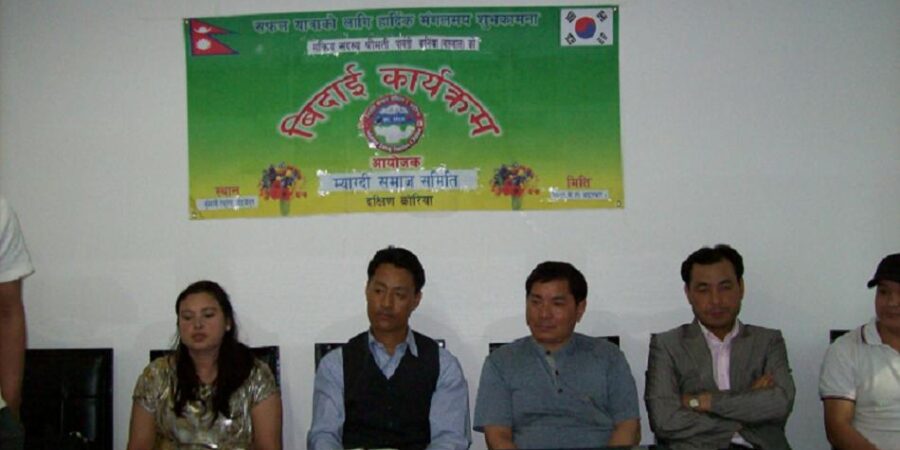 म्याग्दी समाज समितिकी सक्रिय सदस्य श्रीमती पार्वती बानिंया (बरुवाल) आगामी जुन ११ तारिख स्वदेश फर्कन लाग्नु भएकोले उहांको सम्मानमा म्याग्दी समाज समिति दक्षिण कोरियाले एक समारोहका साथ बिदाई कार्यक्रमको आयोजना गरेको छ । सउल तोङदेमुन स्थित निर्माणाधिन लुम्बिनी रेष्टरेण्ट २ को सभा कक्षमा सम्पन्न बिदाई कार्यक्रम समाजका अध्यक्ष नर बहादुर पुनको सभापतित्व र भुपुअध्यक्ष तथा बरिष्ठ सल्लाहकार बिरु रोकाको प्रमुख आतिथ्यमा सम्पन्न भएको थियो । म्याग्देली भलिबल खेलाडी तथा सल्लाहकार राम कृष्ण पुन , म्याग्दी भलिबल टीम क्याप्टेन राम खड्का, सल्लाहकार ओम नारायण जुग्जाली,म्याग्दी समाज सल्लाहकार तथा थसेसअध्यक्ष भक्त सेरचन लगायतका बक्ताहरुले कार्यक्रमको बारेमा प्रकाश पार्नु भएको थियो । प्रमुखRead More